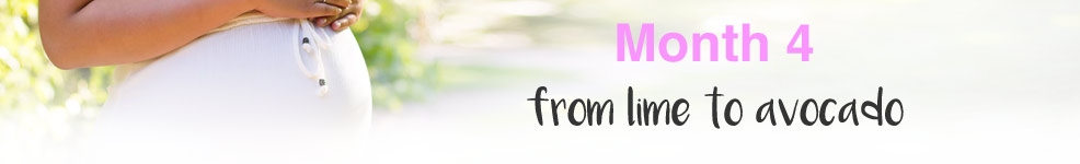 In terms of size, your fetus will develop from the size of a lime to about the size of an avocado. Delicious! Here's how the fourth month progresses.